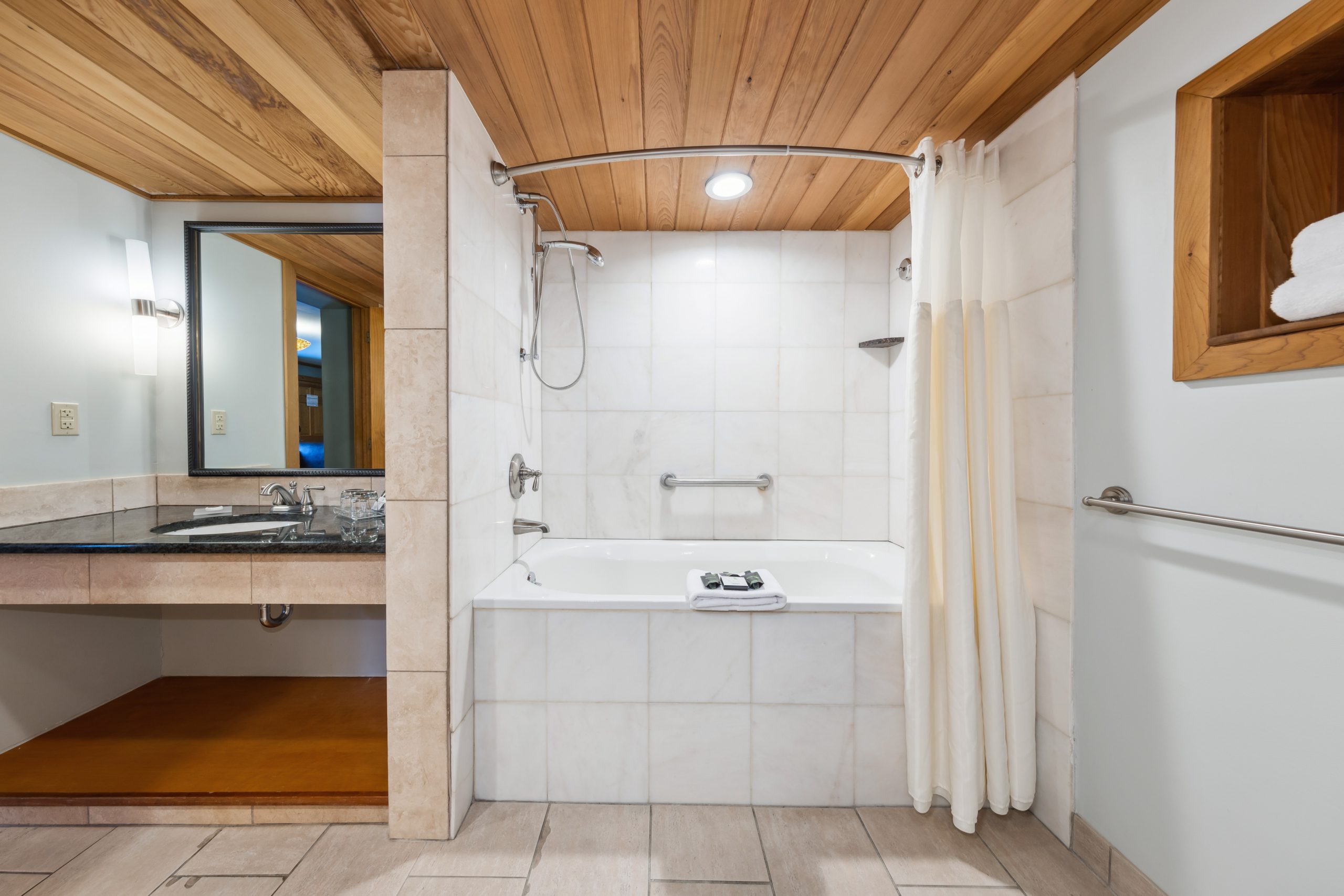 - Room 347 is ADA accessible and features lower counter tops and a roll-in shower (no whirlpool tub).